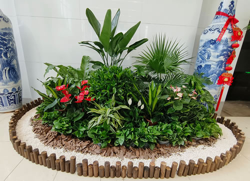 - 前台区域:组合盆栽如发财树搭配小型花卉,提升企业形象,营造专业而温馨的第一印象。